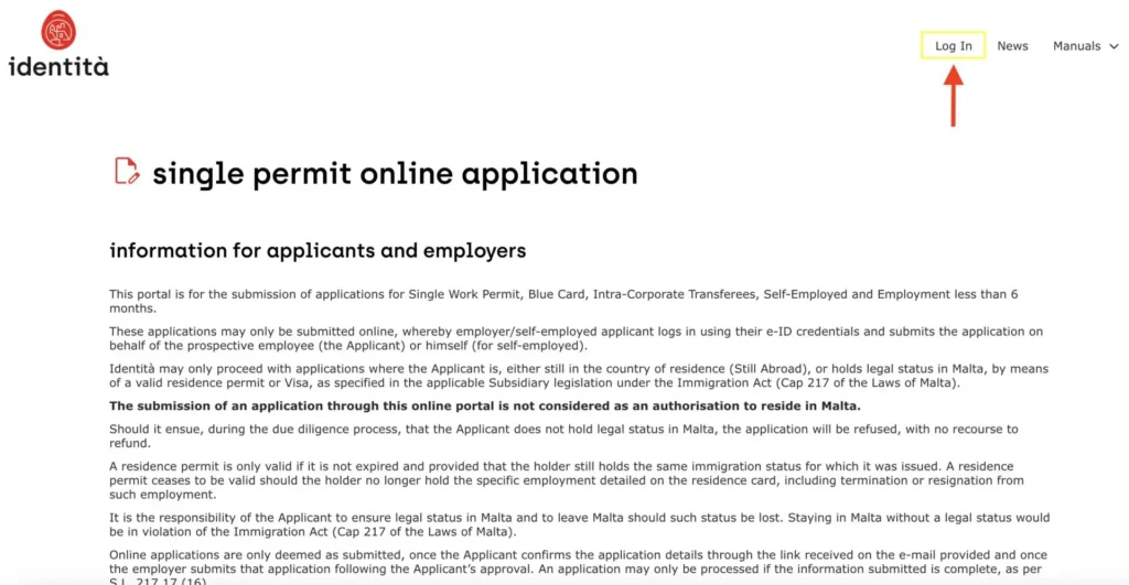 まず最初に、申請は以下のいずれかの方法でオンラインポータル(singlepermit.gov.mt)から行います。